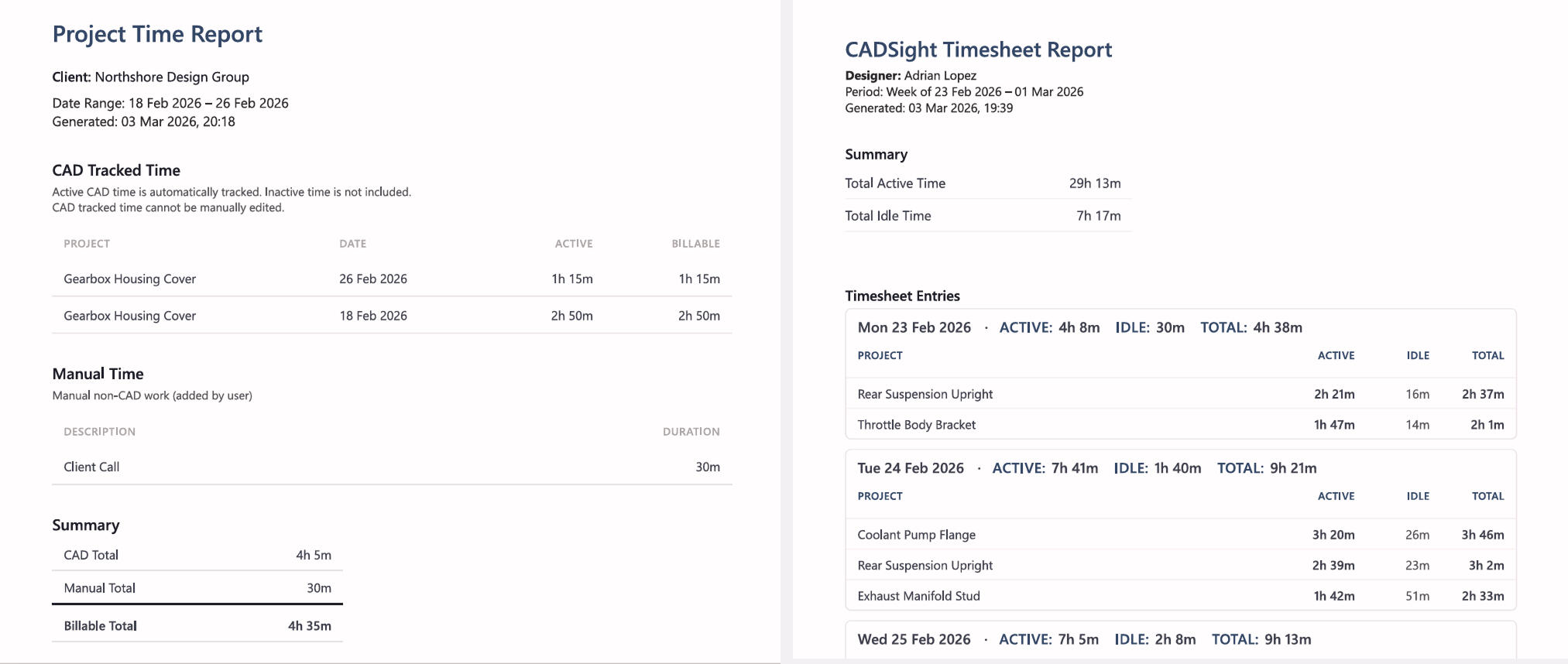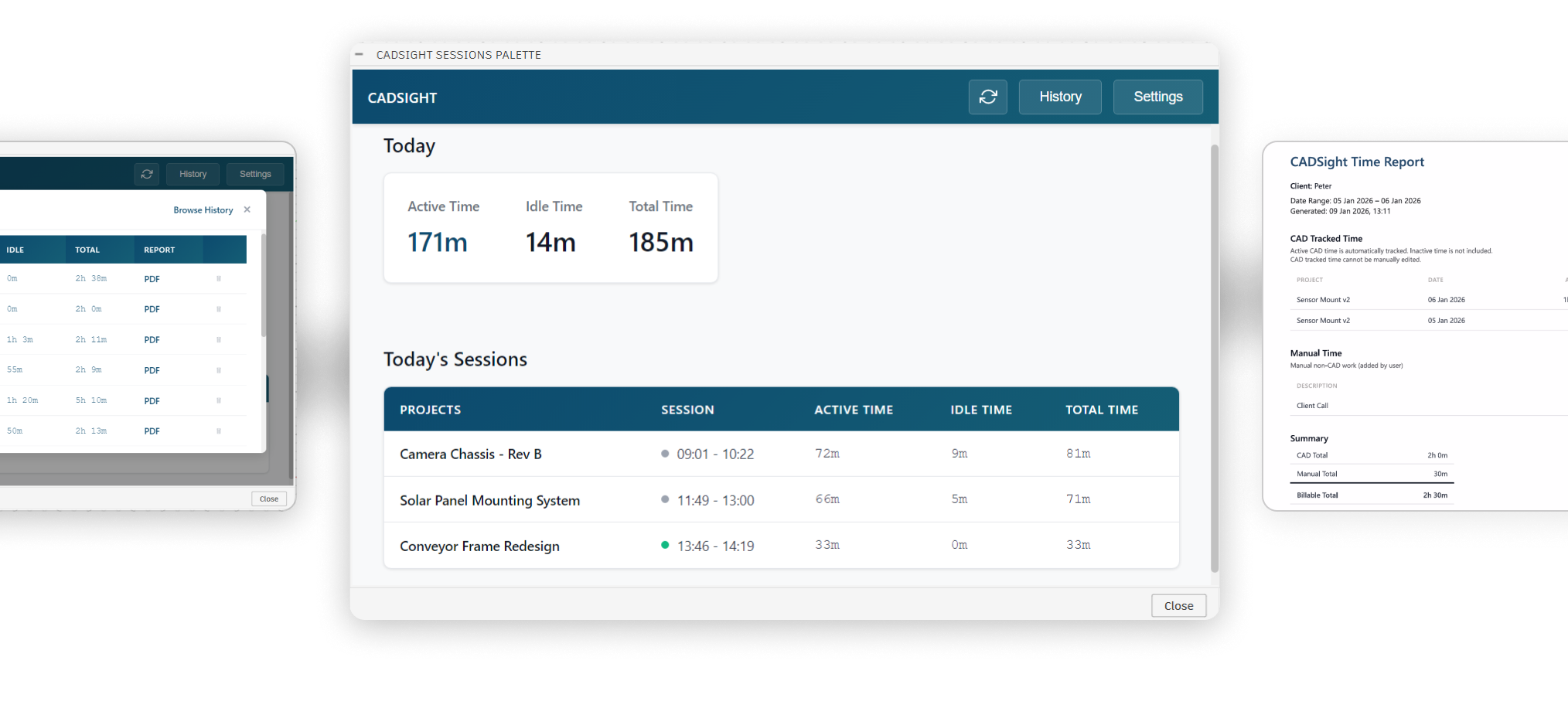 Capture every minute of CAD work while you work.