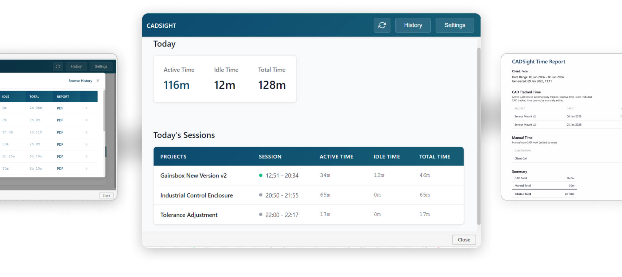 Track your CAD work automatically and generate clean reports for clients.
